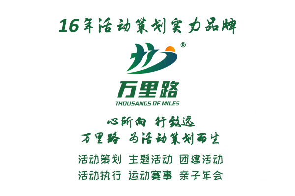 萬(wàn)里路活動(dòng)策劃是一家致力于主題活動(dòng)、團(tuán)建活動(dòng)、運(yùn)動(dòng)賽事、軍事培訓(xùn)、年會(huì)策劃、親子夏令營(yíng)、徒步旅行、定制服務(wù)(會(huì)務(wù)會(huì)展執(zhí)行、廣告設(shè)計(jì)制作、舞美燈光搭建、攝影攝像剪輯) 素質(zhì)教育(研學(xué)活動(dòng)、社會(huì)實(shí)踐、勞動(dòng)教育)為一體的大型公司。16年活動(dòng)策劃實(shí)力品牌一萬(wàn)里路2009成立,2015年通過(guò)國(guó)家商標(biāo)局注冊(cè),經(jīng)過(guò)多年的發(fā)展,已成為中國(guó)活動(dòng)策劃領(lǐng)域的領(lǐng)跑者,目前是華東區(qū)域執(zhí)行團(tuán)隊(duì)經(jīng)驗(yàn)豐富,品牌過(guò)硬策劃資深的活動(dòng)策劃公司,公司先后獲得安徽武漢商會(huì)理事單位,安徽省拓展行業(yè)促進(jìn)會(huì)理事單位,武漢安慶商會(huì)會(huì)員單位,武漢最佳品牌戶(hù)外拓展培訓(xùn)機(jī)構(gòu),湖北十佳拓展培訓(xùn)公司,全國(guó)體驗(yàn)教育培訓(xùn)論壇十佳培訓(xùn)師,全國(guó)影響力企業(yè),仟吉集團(tuán)指定體驗(yàn)拓展培訓(xùn)師,樂(lè)博樂(lè)博機(jī)器人指定體驗(yàn)拓展培訓(xùn)供應(yīng)商,安徽拓展行業(yè)促進(jìn)會(huì)常務(wù)會(huì)長(zhǎng),等榮譽(yù)。我們意在通過(guò)不斷創(chuàng)新不斷進(jìn)取、不斷開(kāi)拓的經(jīng)營(yíng)思路為您企業(yè)活動(dòng)保駕護(hù)航!同時(shí),萬(wàn)里路秉承工匠心態(tài),用專(zhuān)注、專(zhuān)業(yè)、專(zhuān)心、專(zhuān)一經(jīng)營(yíng)理念為您企業(yè)活動(dòng)提供高品質(zhì)的服務(wù)! 萬(wàn)里路活動(dòng)策劃,16年沉淀只為尊貴您!