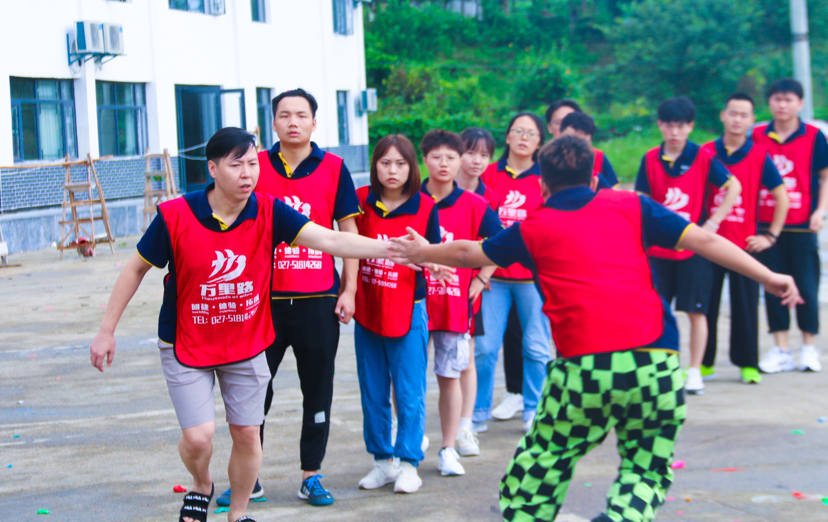 團隊成員手拉細線,通過配合協(xié)作