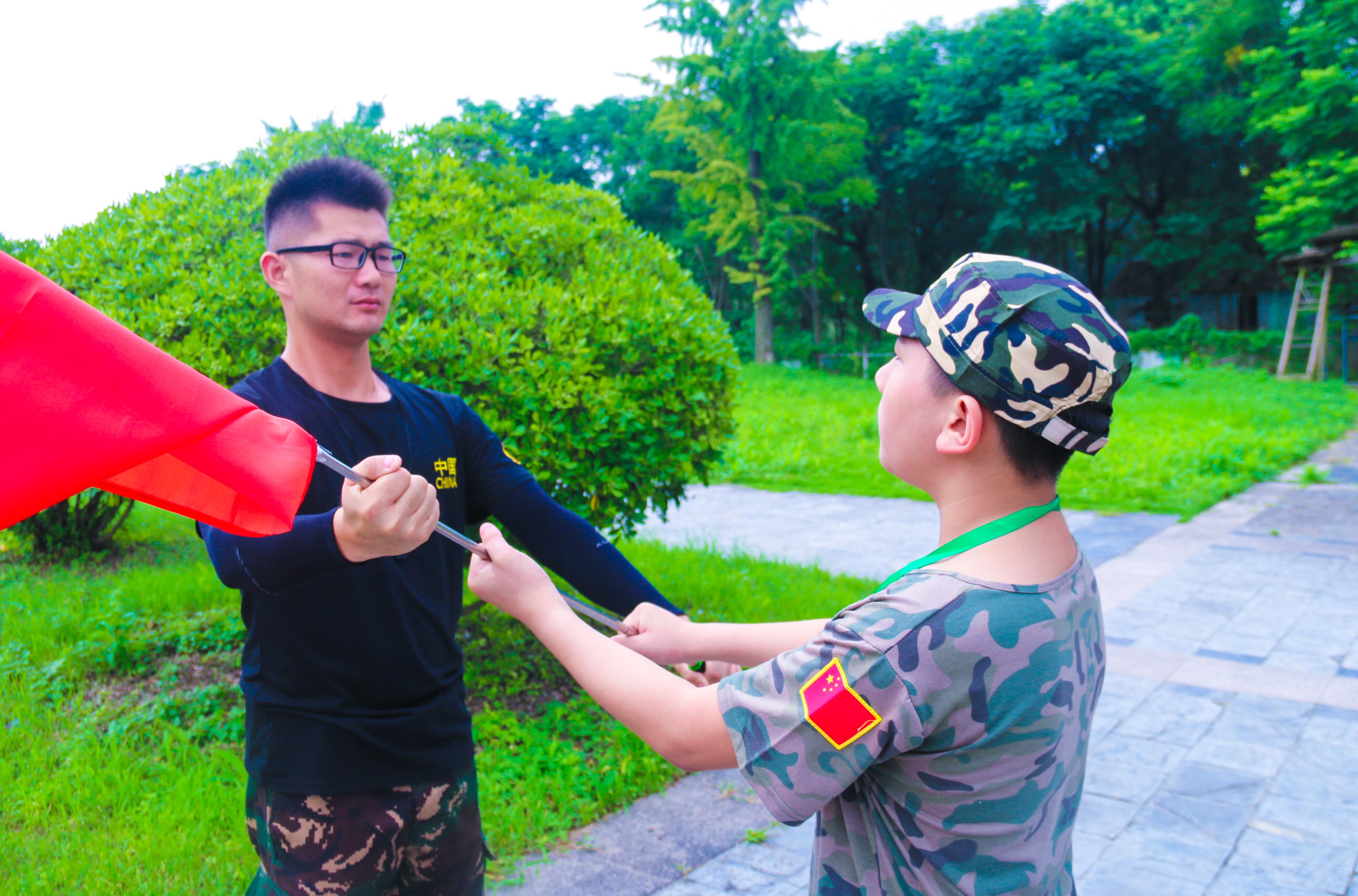 開營儀式上,教官向孩子授旗,并宣布訓練正式開始