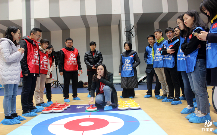 旱地冰壺是一個(gè)以團(tuán)隊(duì)為單位在平滑地面上進(jìn)行的投擲性競(jìng)賽項(xiàng)目。通過(guò)讓本方旱地冰壺球停在預(yù)先設(shè)定好的位置,或?qū)?duì)方旱地冰壺球擊出,達(dá)到制勝的目的。旱地冰壺是一種通過(guò)團(tuán)隊(duì)協(xié)作集體力和智力于一身的比賽,是一項(xiàng)需要個(gè)人技術(shù)與團(tuán)隊(duì)?wèi)?zhàn)術(shù)配合的運(yùn)動(dòng)項(xiàng)目。
