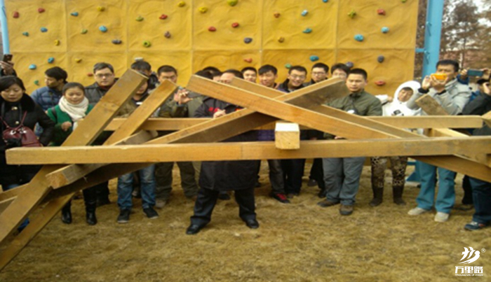 中國智慧--魯班橋是一項團(tuán)隊共同創(chuàng)造訓(xùn)練與團(tuán)隊溝通協(xié)作類項目,在規(guī)定的40分鐘時間內(nèi)任何外力不借助用15根方木建造一座穩(wěn)固的橋。