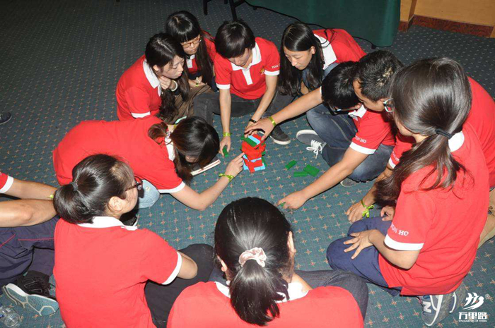 以隊(duì)為單位,每位隊(duì)員在不用語(yǔ)言溝通的情況下運(yùn)用已有的積木,通過(guò)大家的相互協(xié)作在滿足每位隊(duì)員不同需求的情況下共同完成團(tuán)隊(duì)任務(wù),任務(wù)時(shí)間40分鐘
