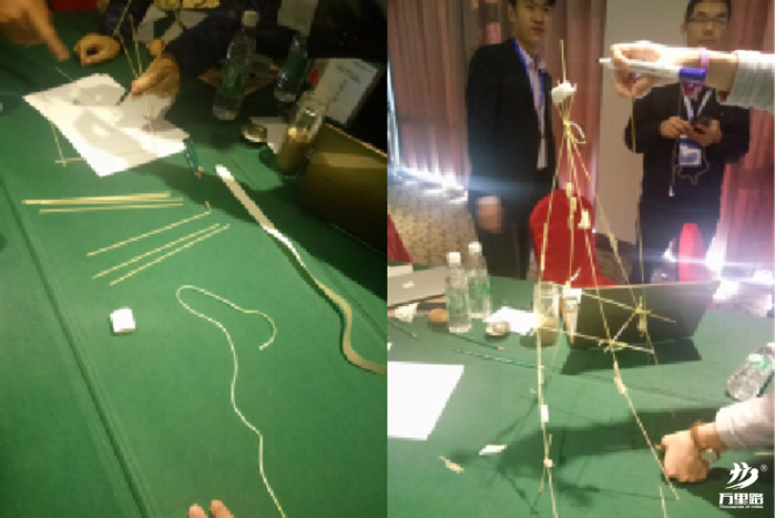 繩子可以截?cái)啵梢愿渌〗M合作也可以不合作,培訓(xùn)師要求,分享,細(xì)節(jié),繩子可以分開(kāi)好幾股創(chuàng)新,首先做底部做牢固,然后上面分別像樹(shù)杈一樣延展下去,到上面越來(lái)越輕。會(huì)搭的很高。