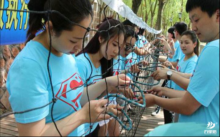 一個團隊的所有成員,在規(guī)定時間內(nèi),利用特殊的規(guī)則用一根長長的繩子,穿過一個特殊蜘蛛網(wǎng)的每一個網(wǎng)洞。