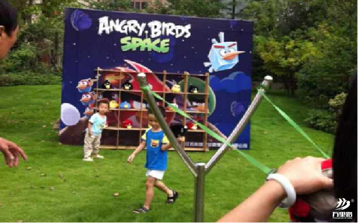 通過(guò)彈弓彈射小鳥(niǎo)公仔,一名隊(duì)員彈射,一名隊(duì)員在8米線外接。另外兩名隊(duì)員協(xié)助,計(jì)時(shí)一分鐘。一分鐘有效接到公仔的數(shù)量來(lái)排名。