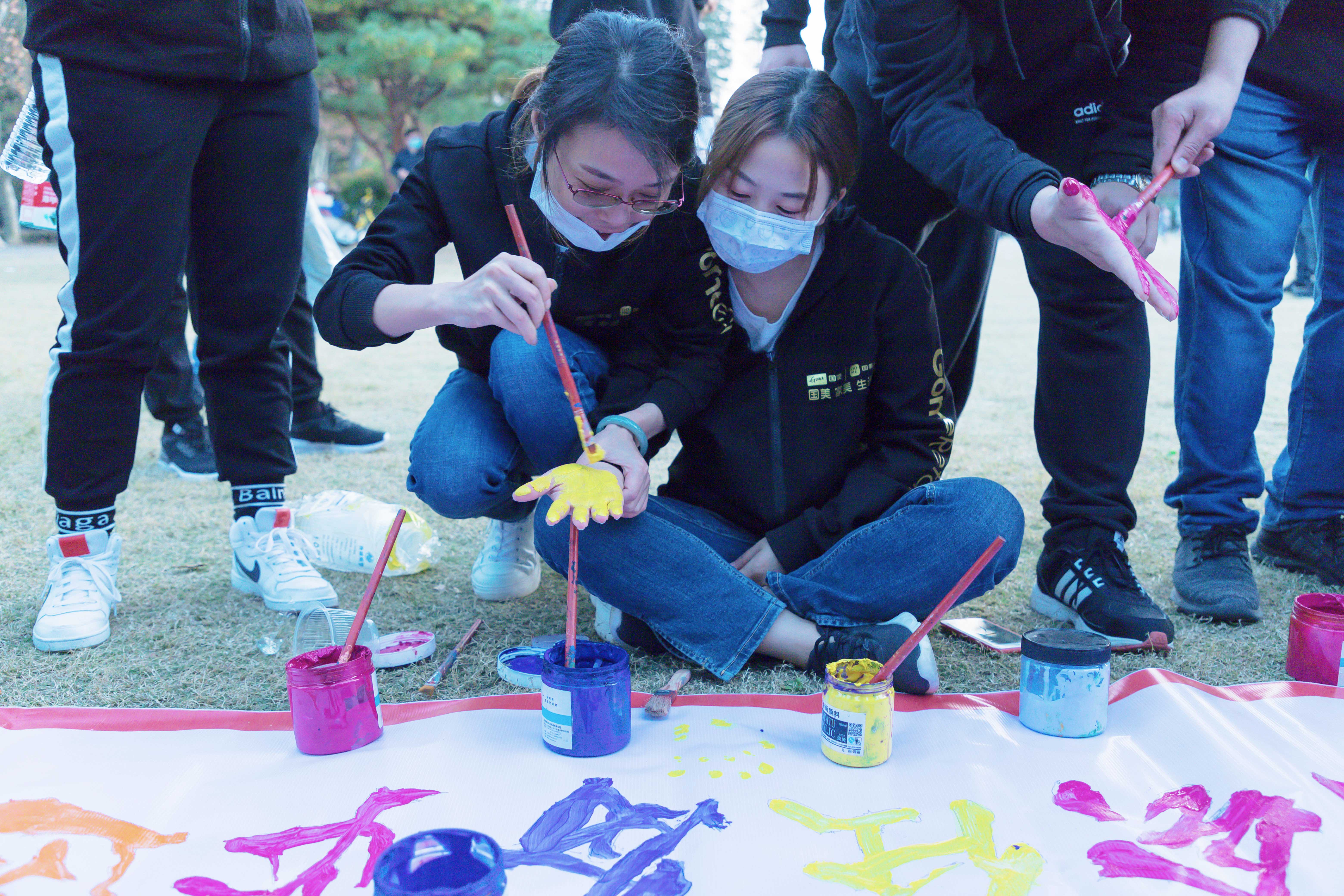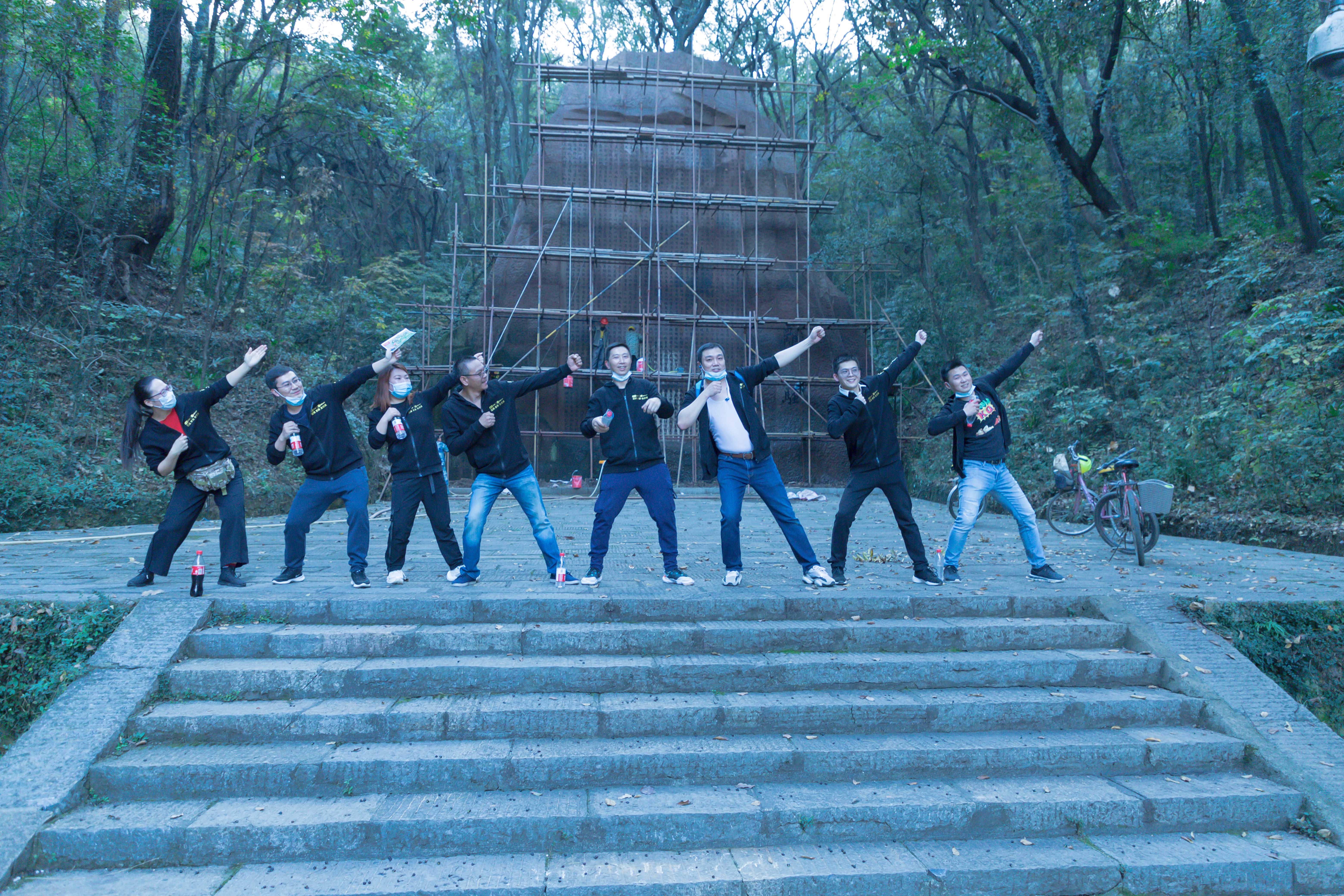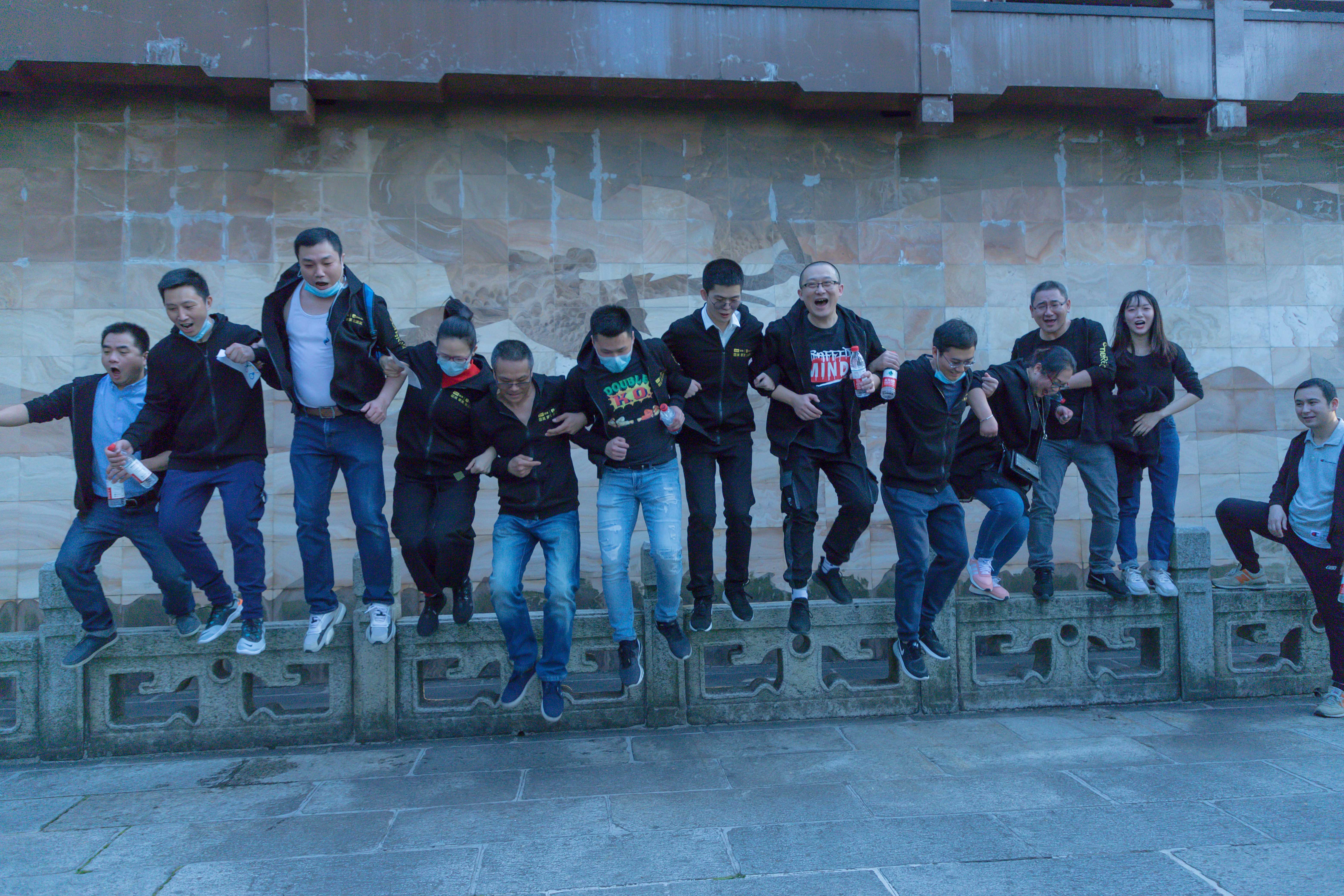 要求雙腳離地,并擺出隔山打牛的姿勢進行定格打卡拍照.