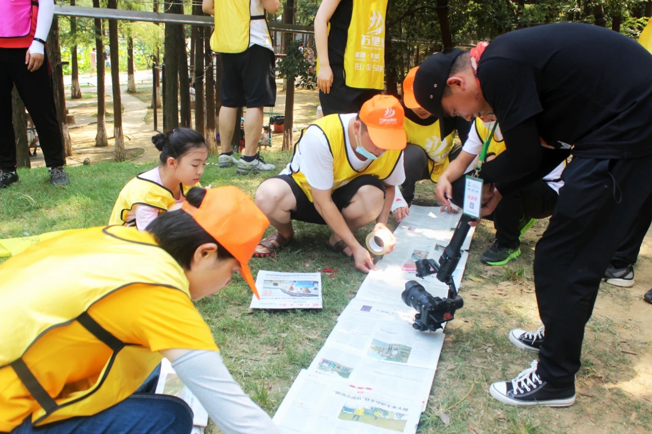 在萬(wàn)里路教練的指導(dǎo)下大人和小孩一起用綁腿繩相互將單只腳綁在一起形成一條蛟龍 從起點(diǎn)到達(dá)終點(diǎn),提煉了大人和孩子之間的默契度,也感受彼此之間的溫暖。大人和孩子之間以一種捆綁的方式讓感情進(jìn)一步升溫。