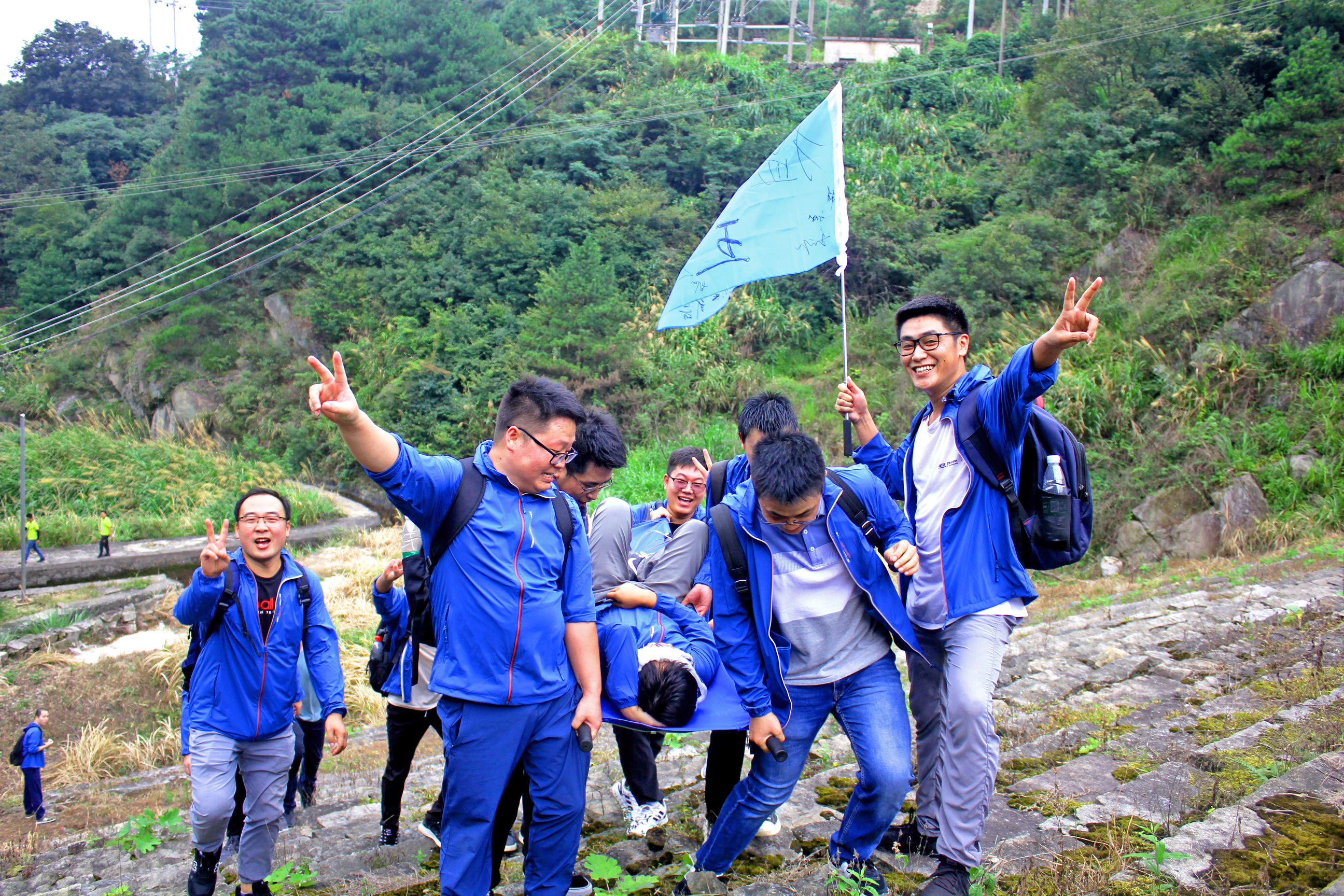 一起抬起“負(fù)傷”的隊(duì)友,沿著山路一直攀登,過程中就像不停的在爬樓梯,對(duì)于不常運(yùn)動(dòng)的隊(duì)員來說是一種挑戰(zhàn)。付出一定的努力,為了完成一個(gè)共同的目標(biāo)。過程并不輕松,但意義重大。