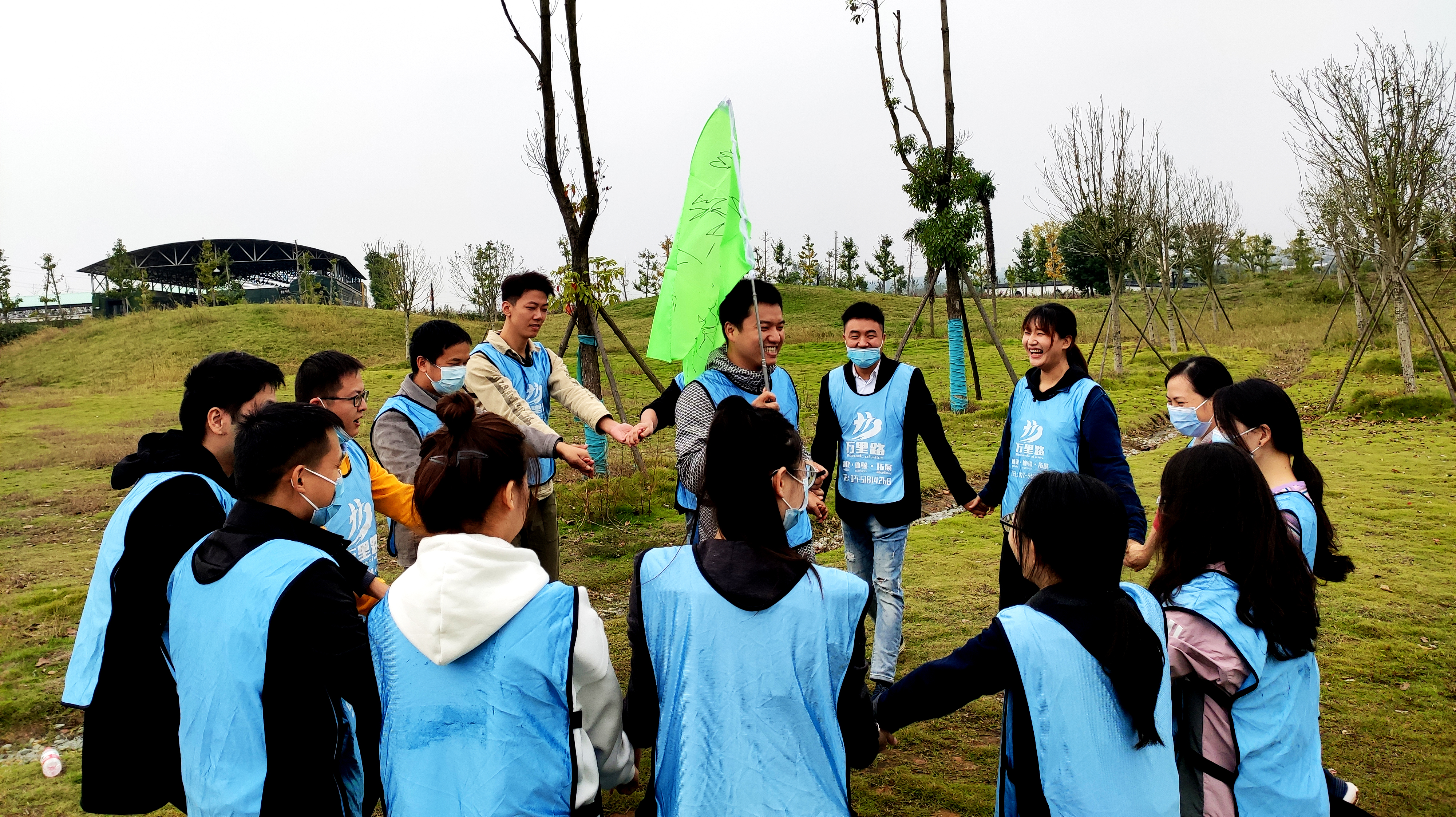 在萬里路教練的帶領(lǐng)下開啟了為期一天有趣的團(tuán)建活動。在破冰這個項目里,各位小伙伴們各自分組,穿好隊服,