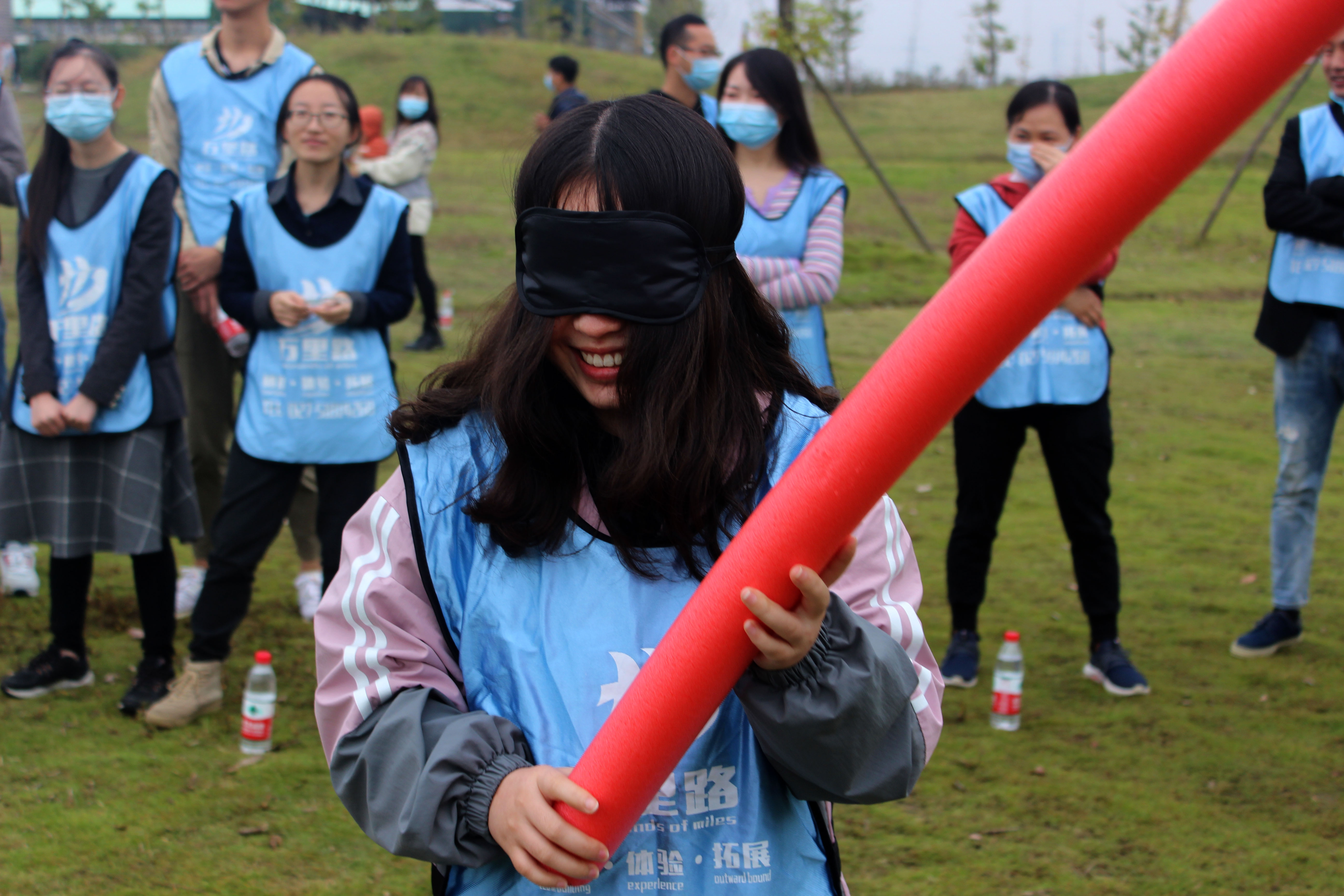 游戲開始,雙方原地轉(zhuǎn)圈后開戰(zhàn),誰先打到對方則為獲勝。蒙眼互打這個項目不僅解壓,同時可以訓(xùn)練協(xié)調(diào)能力,促進(jìn)交流,增進(jìn)友誼。