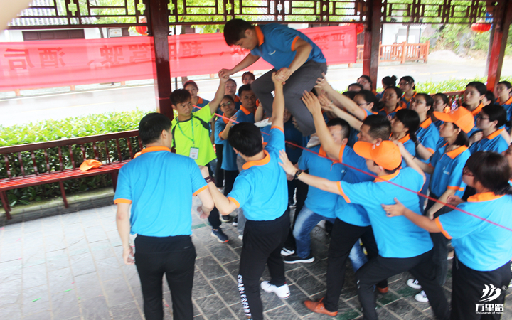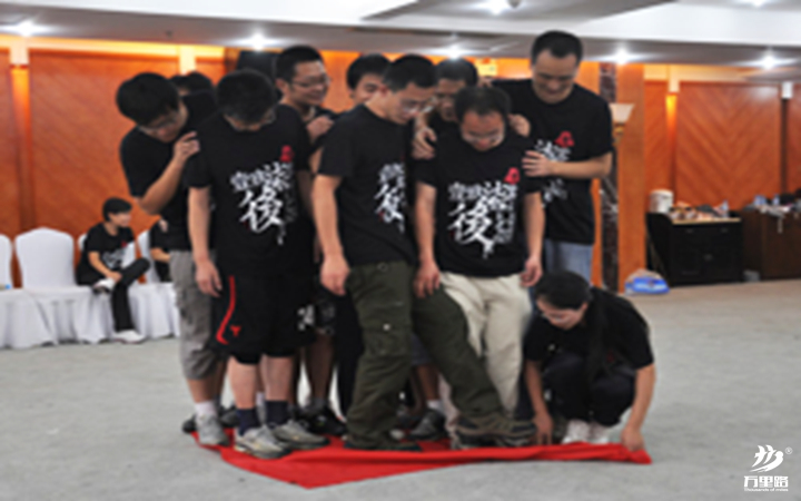 所有伙伴站在一塊剛好能容下所有隊(duì)員的毯子上,要求任何一個(gè)隊(duì)員的任何部位都不接觸地面的情況下把腳下的毯子翻一面。任何人都不允許接觸除毯子以外的任何地方。