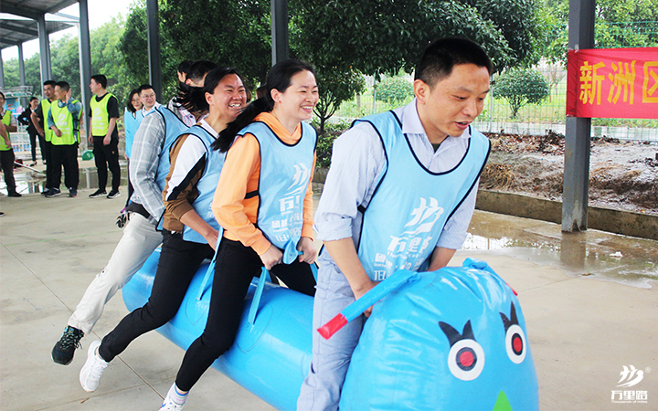 比賽前,參賽隊(duì)員騎在毛毛蟲上立于起跑線后。裁判發(fā)令后,四人同時(shí)騎在毛毛蟲上,雙腳撐地,齊心協(xié)力騎著毛毛蟲往前沖. 比賽全程30米。以毛毛蟲頭部最先到達(dá)終點(diǎn)為準(zhǔn),按用時(shí)最短的順序排名。