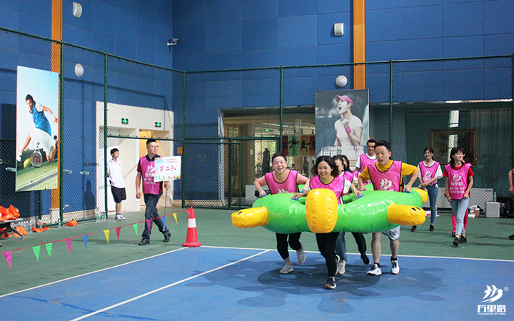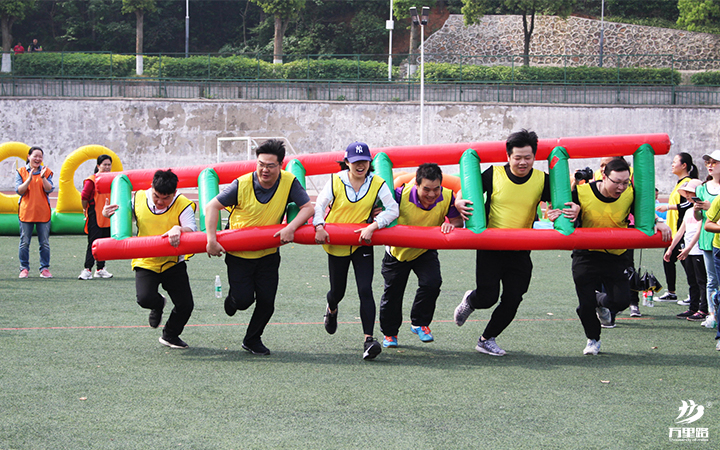 比賽前,參賽隊(duì)員分為2組,女士在起點(diǎn)處,男士立于終點(diǎn)處。比賽開始后,女士在起點(diǎn)處跳繩10個(gè)、跨過跨欄達(dá)到終點(diǎn)處,終點(diǎn)男隊(duì)員背起女隊(duì)員再跨國(guó)跨欄返回起點(diǎn)處與下一組隊(duì)員擊掌接力。所有隊(duì)員完成比賽計(jì)時(shí)結(jié)束,按用時(shí)長(zhǎng)短排名。