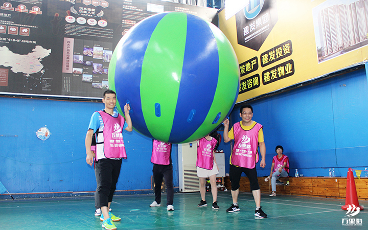 比賽前,參賽隊(duì)員共同托起大球立于起跑線后。裁判發(fā)令后,參賽隊(duì)員共同托著大球沖向終點(diǎn)。比賽全程50米。中間不允許換人。以球體全部到達(dá)終點(diǎn)為準(zhǔn),按用時(shí)最短的順序排名。