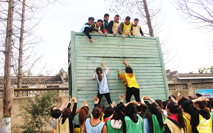 在教練的正確指導(dǎo)下,全體隊(duì)員通過協(xié)作徒手翻越4.2米高的畢業(yè)墻