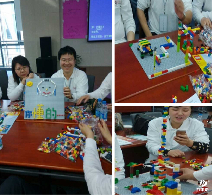 樂高積木拼出各類有趣的或者有一樣的圖案,工程浩大。現(xiàn)場感強,能夠提起大家的參與度。做一些團隊文化的落地和加強。尤其適合小孩子做,不過道具價格比較貴。