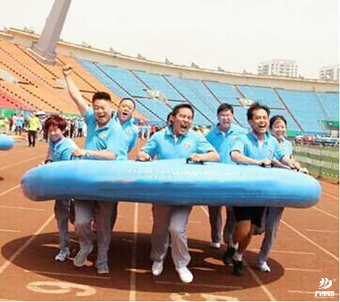 【比賽方法】比賽前,參賽隊(duì)隊(duì)員分別站在道具的8個(gè)洞中并雙手提起道具,裁判發(fā)令后開始計(jì)時(shí),8名隊(duì)員齊心協(xié)力跑向終點(diǎn),按用時(shí)長短排名,時(shí)間越短排名越前。