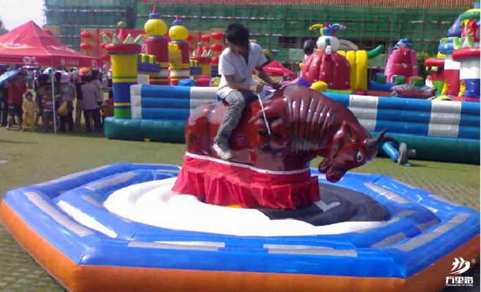 【比賽方法】參賽隊員騎在牛上,準備好后,牛身開始擺動,節(jié)奏由慢到快隨機變化。在規(guī)定的時間內(nèi)人不從牛背上掉下即為過關(guān)。