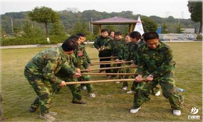 每?jī)扇她R腰握住一木棒組成云梯,隨著隊(duì)員一個(gè)個(gè)爬過云梯的流動(dòng)帶動(dòng)整個(gè)云梯的前進(jìn),從起點(diǎn)到達(dá)終點(diǎn)。