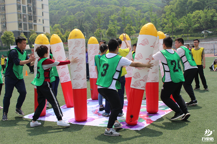 【摘要】每隊4男4女,參賽選手兩兩相距3米圍成一個正方形,每人手中有一根充氣柱。裁判發(fā)令后,充氣柱保持直立于地面,所有參賽隊員順時針由本人所在的位置迅速移動到右手邊隊友所在的位置并扶住隊友的充氣柱。
