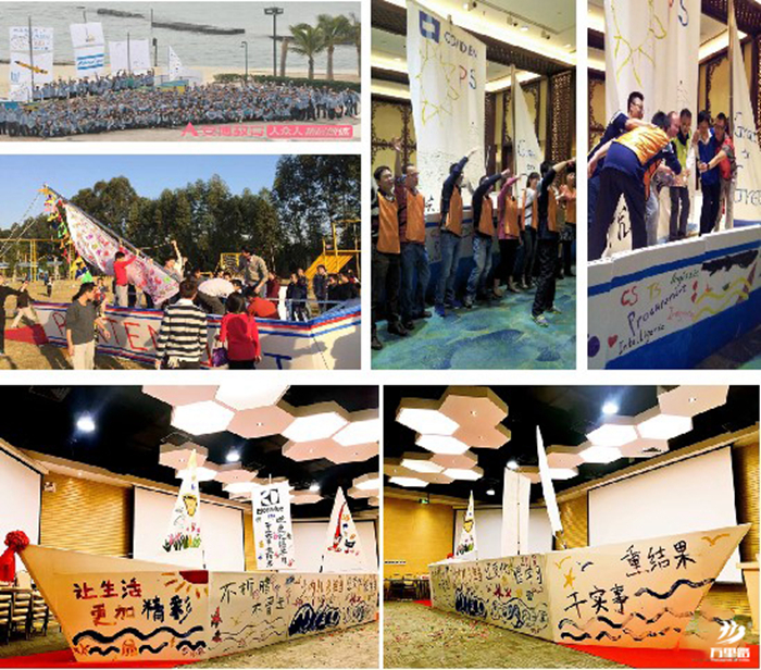 搭建一艘帆船,在制作過(guò)程中帆的制作很關(guān)鍵,要在帆上面繪制象征團(tuán)隊(duì)夢(mèng)想的圖案。船的制作可以是木頭的,也可以是金屬、塑料等等各種材質(zhì)的。但是最常見的是紙箱紙板等等材料。不建議做金屬的,一條船幾大塊,學(xué)員做的只是裝卸拼接的事。