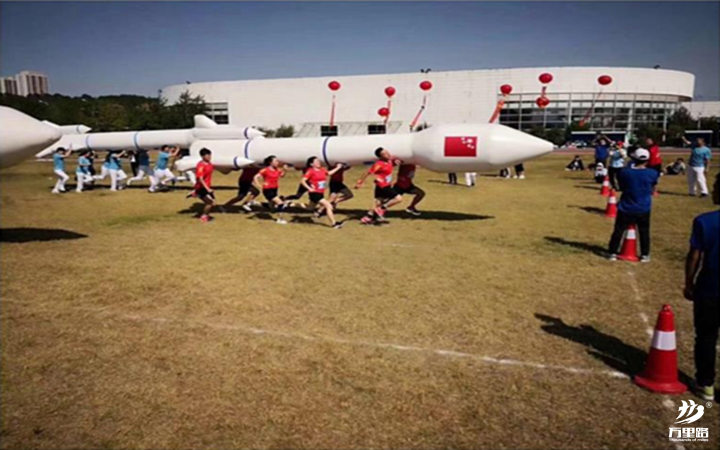 通過(guò)舉起大火箭,同心協(xié)力跑到終點(diǎn),用時(shí)少者勝。