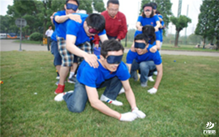 團隊成員分為“牧羊人”(啞人)和“牧羊”(盲人),要求“牧羊人”在規(guī)定的時間內(nèi),運用團隊事先確定的“溝通代碼”指揮“牧羊”進入“羊圈”,并按照活動規(guī)定的位置進行分布。
